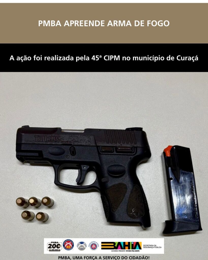 A Polícia Militar da Bahia (PMBA), por intermédio da 45ª Companhia Independente de Polícia Militar (CIPM)/Curaçá, apreendeu, nesta sexta-feira (01), uma arma de fogo no município de Curaçá.