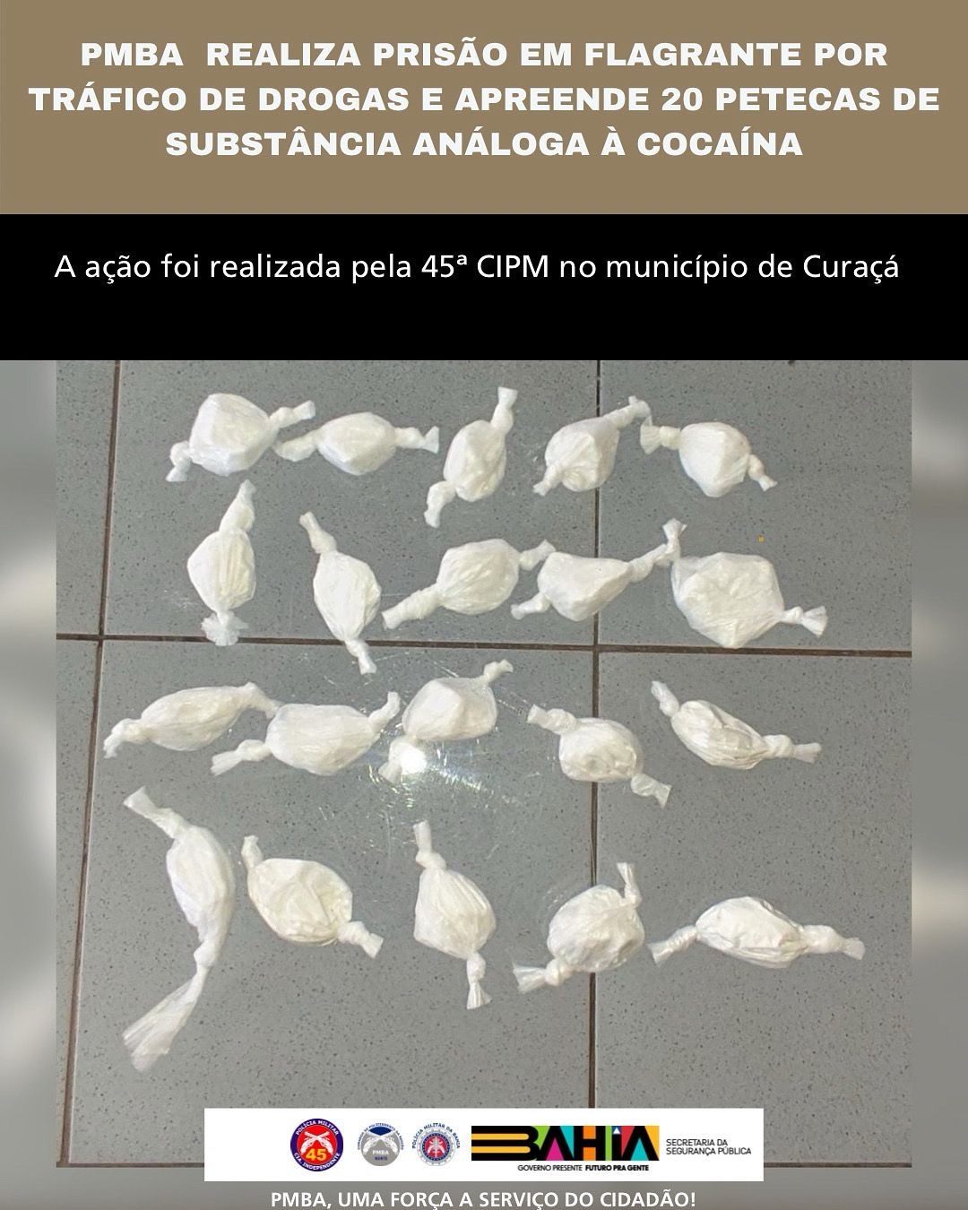 A Polícia Militar da Bahia (PMBA), por meio da 45ª Companhia Independente de Polícia Militar (45ª CIPM/Curaçá), realizou, nesta terça-feira (3), a prisão em flagrante de um homem por tráfico de drogas no município de Curaçá.