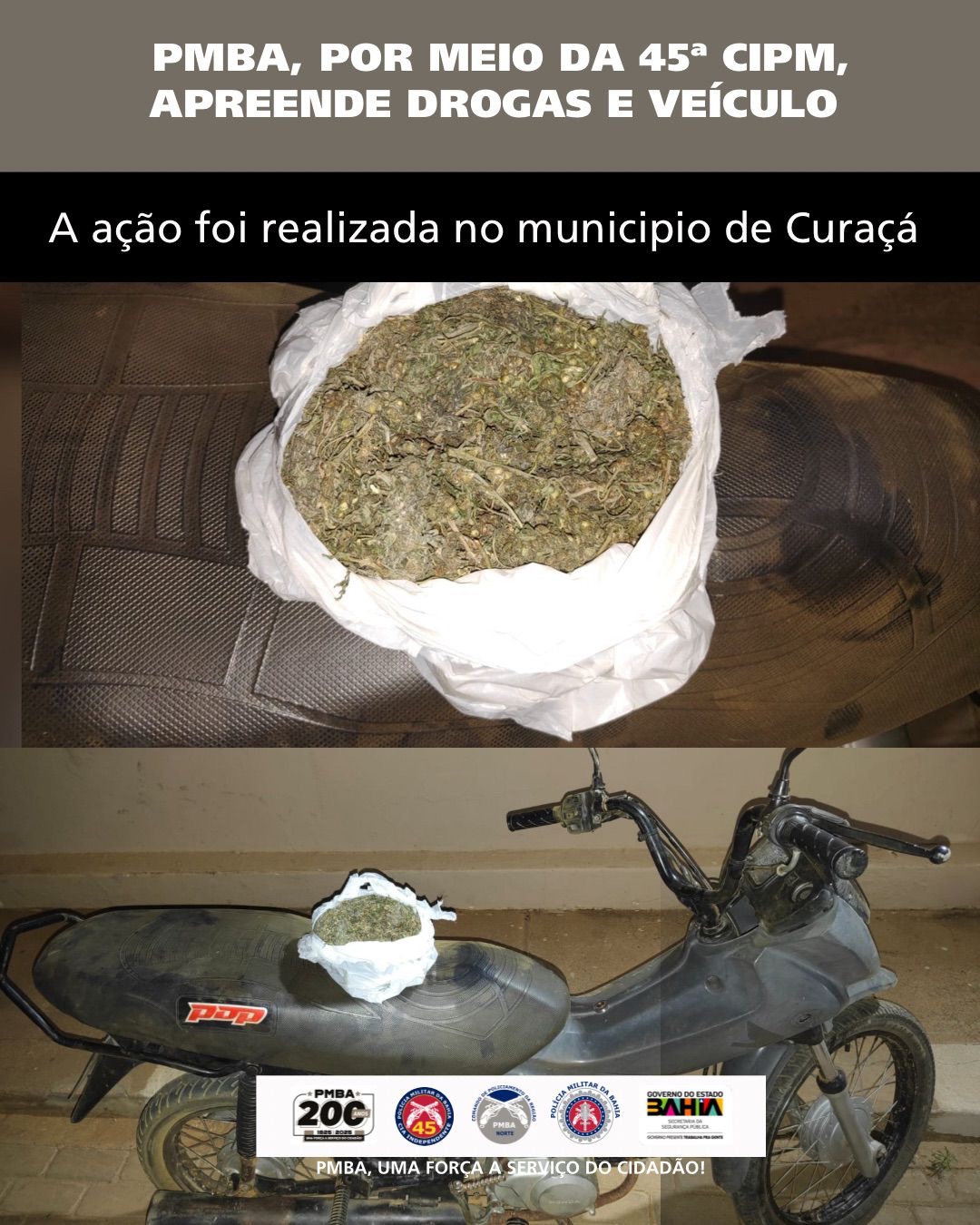 A Polícia Militar da Bahia (PMBA), por meio da 45ª Companhia Independente de Polícia Militar (CIPM) de Curaçá, realizou, nesta terça-feira (30), a apreensão de entorpecentes e de um veículo no bairro Populares, no município de Curaçá.