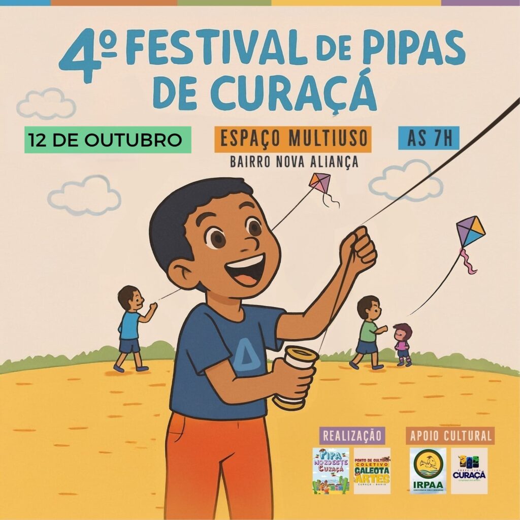 No próximo dia 12 de outubro, Curaçá vai celebrar o Dia das Crianças com o 4º Festival de Pipas, a partir das 7h, no Espaço Multiuso do bairro Nova Aliança. O evento promete reunir famílias e crianças em um momento de lazer, criatividade e integração cultural.
