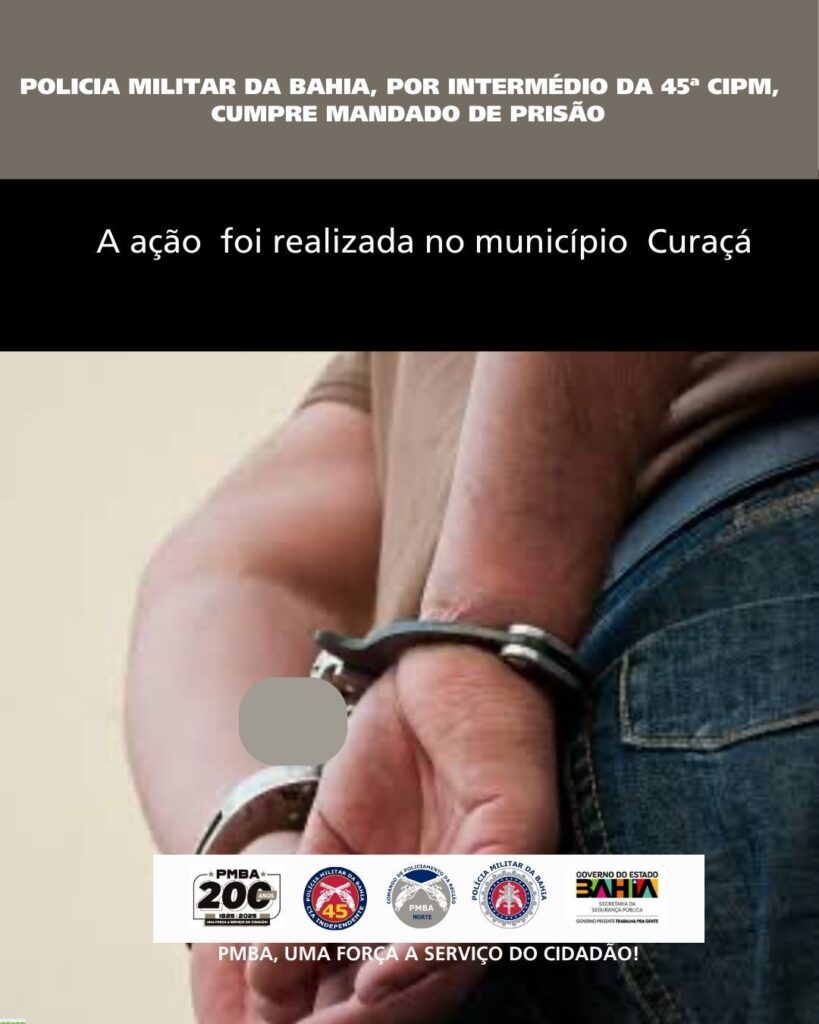A Polícia Militar da Bahia, por meio da 45ª Companhia Independente de Polícia Militar (CIPM), cumpriu um mandado de prisão nesta terça-feira (25), durante a intensificação do policiamento no município de Curaçá.