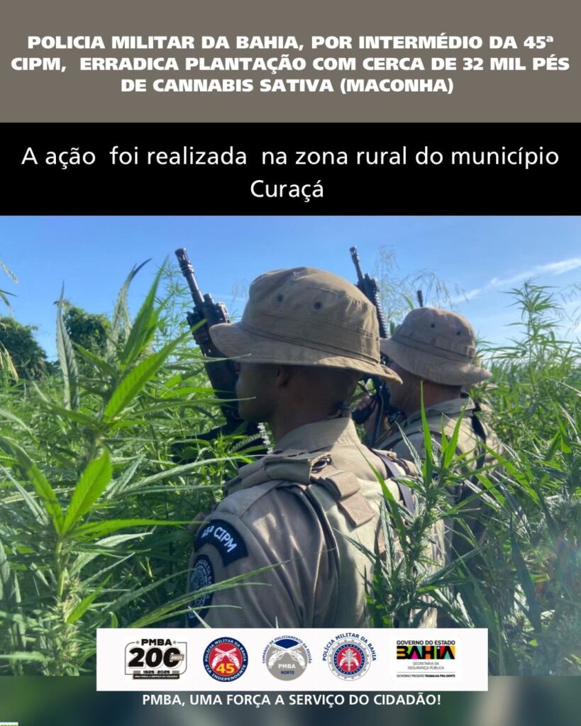 A ação reforça o compromisso da Polícia Militar da Bahia no combate ao tráfico de drogas e na promoção da segurança nas áreas rurais do estado. Fonte: 45ª CIPM / ASCOM