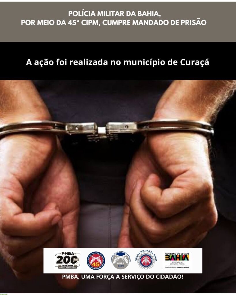 A Polícia Militar da Bahia, por meio da 45ª Companhia Independente de Polícia Militar (CIPM), cumpriu um mandado de prisão no município de Curaçá.