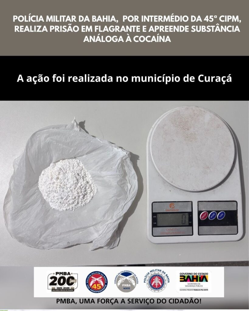 A Polícia Militar da Bahia (PMBA), por meio da 45ª Companhia Independente de Polícia Militar (CIPM), prendeu em flagrante, nesta terça-feira (20), um homem suspeito de tráfico de drogas no município de Curaçá.