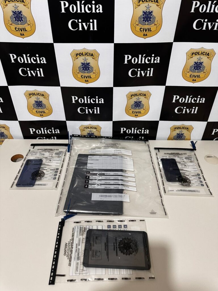 O jovem foi localizado no centro da cidade, sendo apreendidos, durante a diligência, 04 (quatro) dispositivos eletrônicos, sendo 02 (dois) celulares, um tablet e um notebook. Todos os aparelhos serão analisados e servirão para a conclusão da investigação.