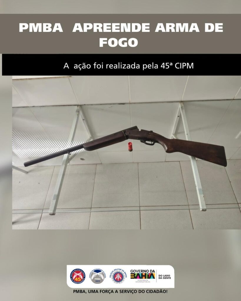 A Polícia Militar da Bahia (PMBA), durante a realização de patrulhamento ordinário, efetuou a apreensão de uma arma de fogo na zona rural do município de Curaçá.