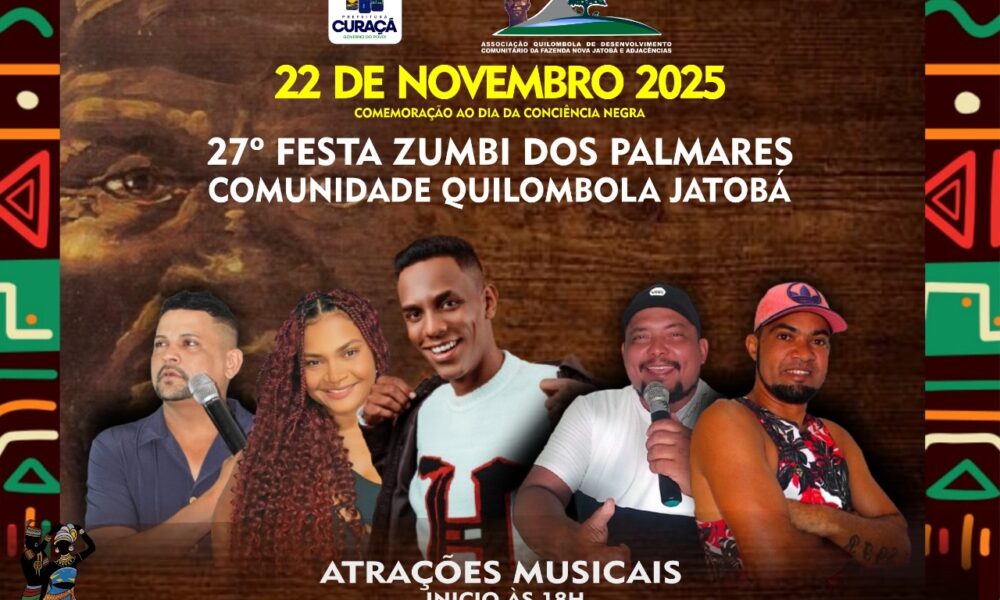 A Comunidade Quilombola Jatobá, em Curaçá, realizará no próximo sábado (22) a 27ª Festa Zumbi dos Palmares, em comemoração ao Dia da Consciência Negra. O evento...