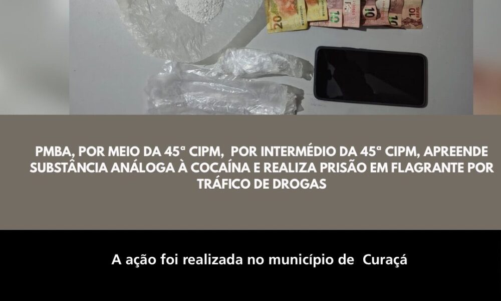 A Polícia Militar da Bahia (PMBA), por intermédio da 45ª Companhia Independente de Polícia Militar (CIPM/Curaçá), realizou, no sábado (07), a apreensão de cocaína e...
