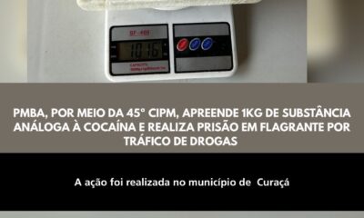 A Polícia Militar da Bahia (PMBA), por intermédio da 45ª Companhia Independente de Polícia Militar (CIPM/Curaçá), realizou, no sábado (07), a apreensão de cocaína e...