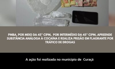 A Polícia Militar da Bahia (PMBA), por intermédio da 45ª Companhia Independente de Polícia Militar (CIPM/Curaçá), realizou, nesta sexta-feira (20), a apreensão de substância análoga à...