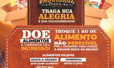 A tradicional Festa dos Vaqueiros de Curaçá chega à sua 72ª edição e neste ano, mais uma vez, o ingresso para participar do evento pode ser...